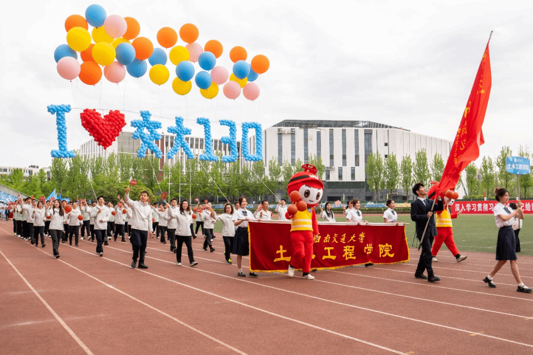 在交大建校 130 周年的奋进征程中我们接续第一个比赛日的热血与呐喊齐聚犀浦校区北区田径场迎来西南交通大学第 125 届运动会…