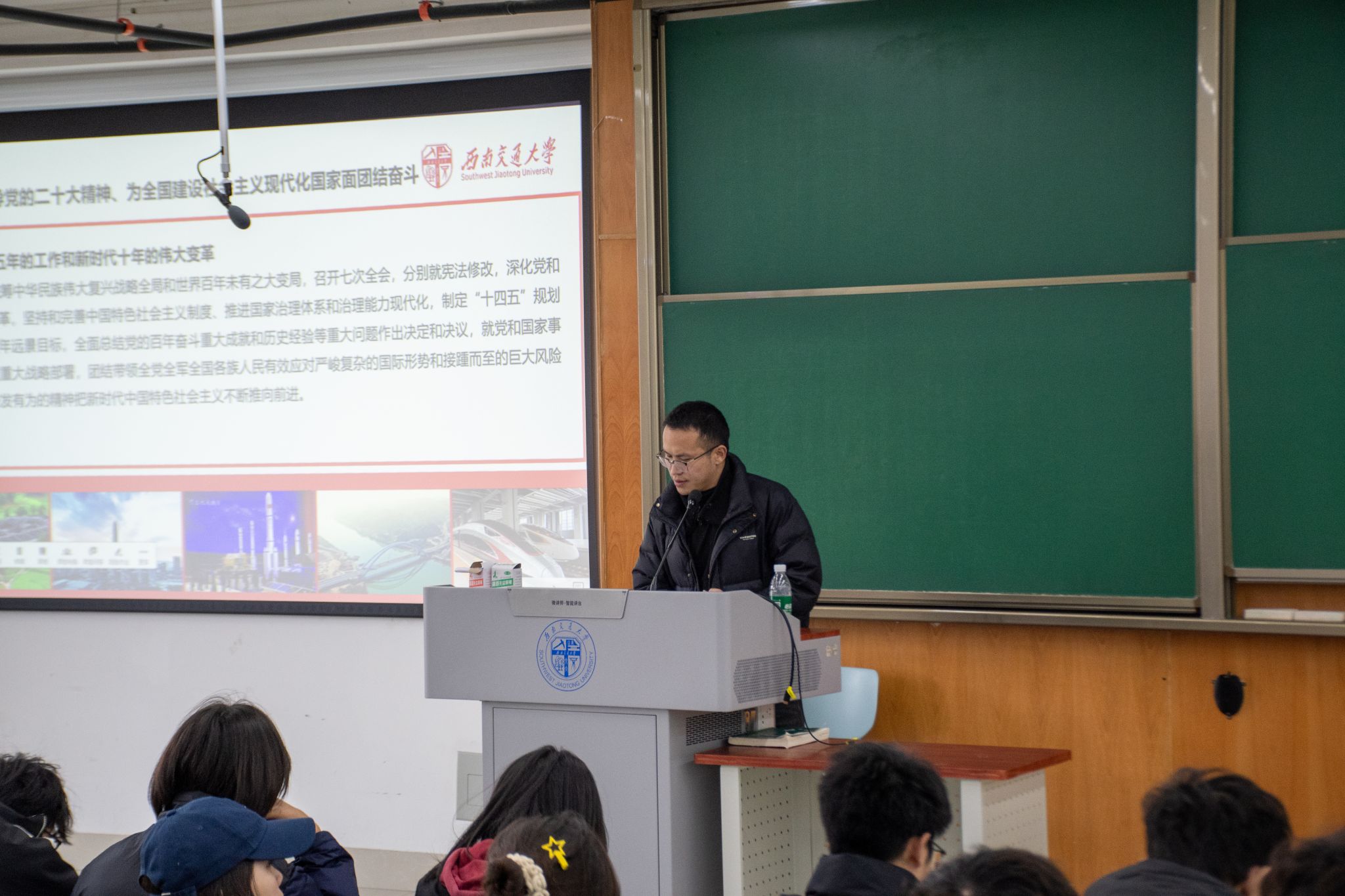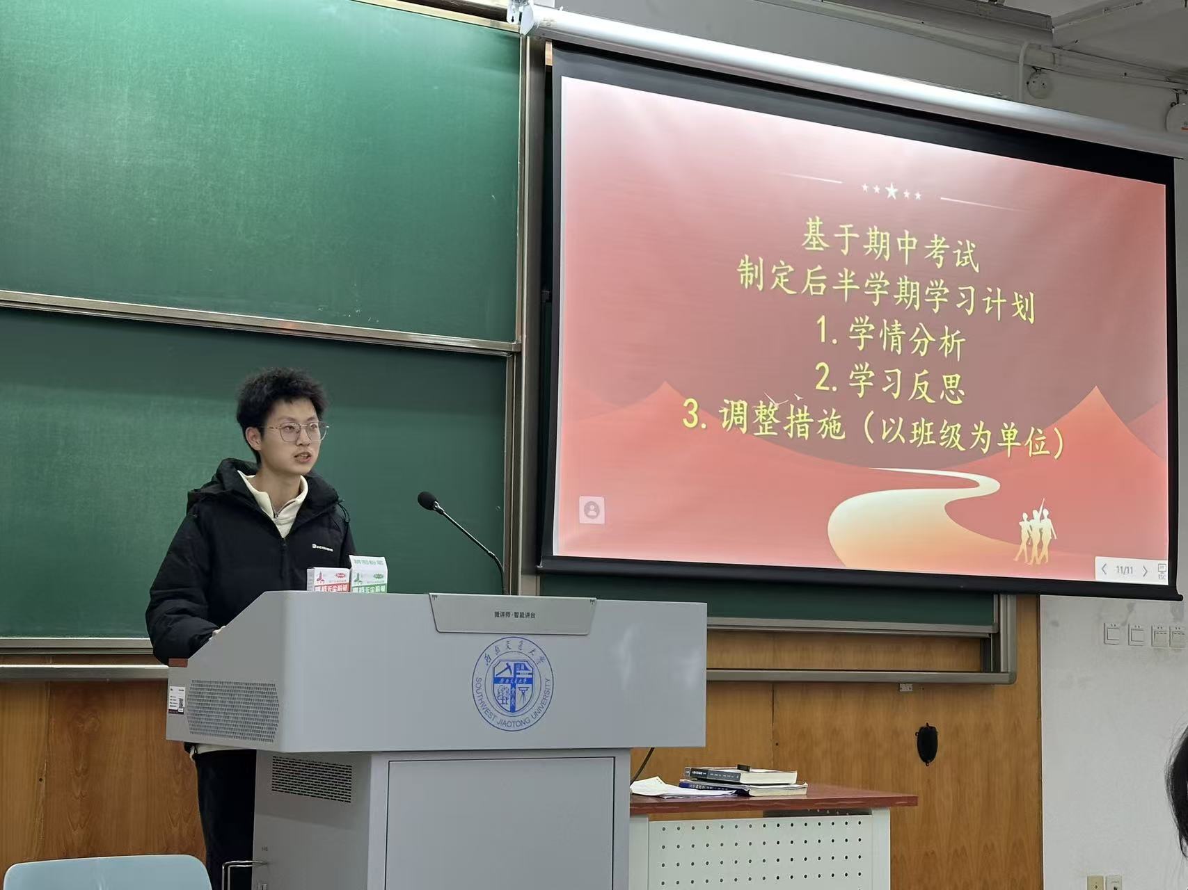 11月27日下午15:45“党的二十大精神习近平新时代中国特色社会主义思想学习及爱国荣校”专题教育学习,在X4359教室进行。彭政涛老师系统解读了党的二十大精神核心要义和实践要求,深入浅出地帮助学生厘清理论脉络、把握思想精髓。彭老师指出,作为新时代的大学生,大家要深刻领会党的二十大精神,将个人成长与国家发展紧密结合,为实现中华民族伟大复兴的中国梦贡献自己的力量。最后,彭老师对同学们提出殷切期望,希望大家能够珍惜这次培训机会,认真学习、积极思考、勇于实践,努力成为新时代的优秀学生干部。