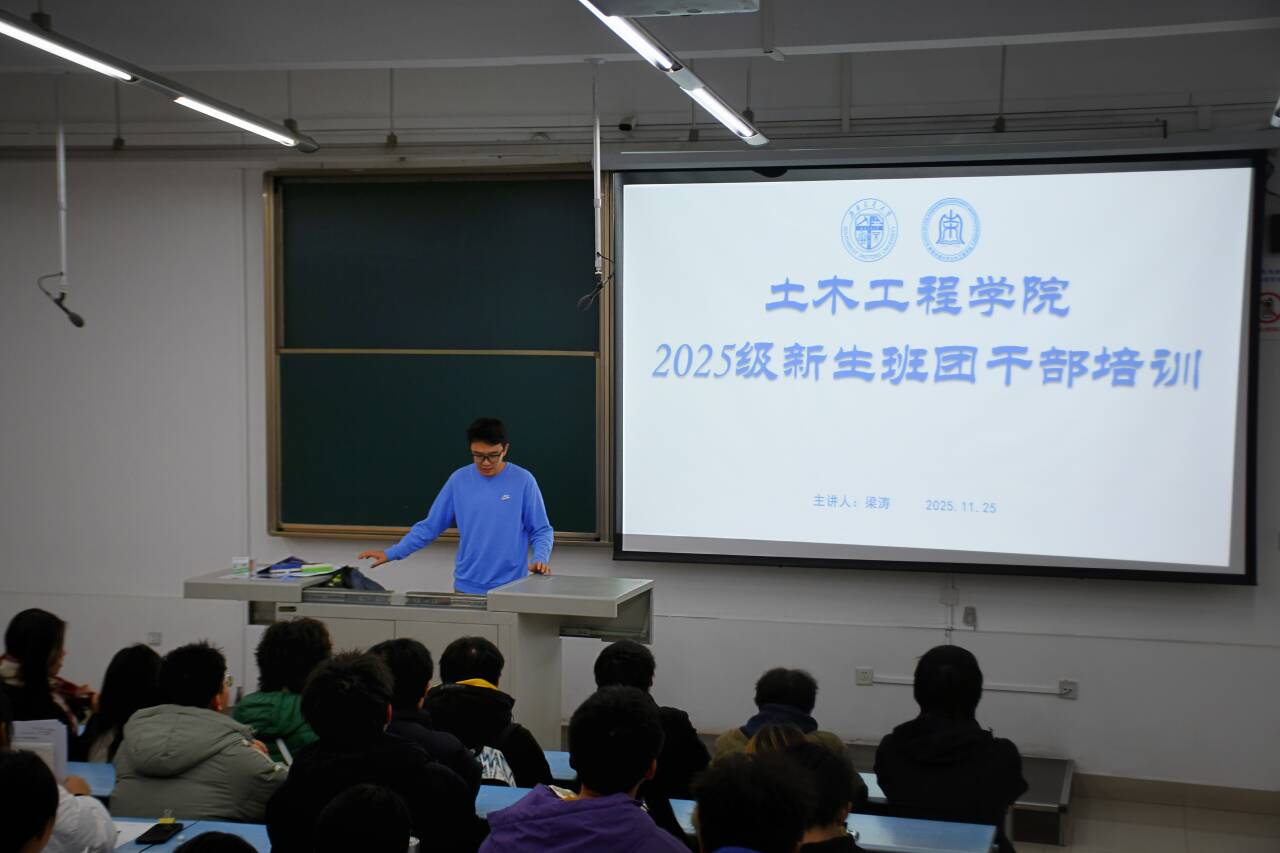 土木工程学院青年讲师团成员、2025级辅导员杨颖钊老师为全体班团干部开展“团的十九大精神”专题团课。土木工程学院青年讲师团成员、2025级辅导员梁涛老师,面向新生干部开展新生班干部理论素养和能力素质提升”专题培训土木工程学院青年讲师团成员、2025级辅导员郭哲维老师面向新生团学组织干事开展“新生团学组织干事能力素质提升”专题培训;土木工程学院青年讲师团成员、2025级辅导员彭政涛老师面向初级班全体学员带来“党的二十大精神、习近平新时代中国特色社会主义思想及爱国荣校”专题讲座