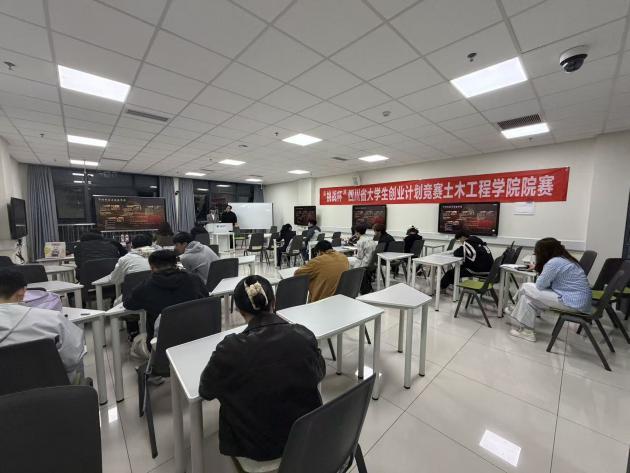 2026年3月26日晚7点,2026年“挑战杯”中国大学生创业计划竞赛土木工程学院院内选拔赛于犀浦校区X30385教室顺利举行。五支参赛队伍历经精心筹备与打磨,齐聚赛场,同台比拼,争夺校级赛事的晋级名额。出席本次选拔赛的嘉宾有拥有丰富竞赛指导经验的何畏老师、钱瑶老师。