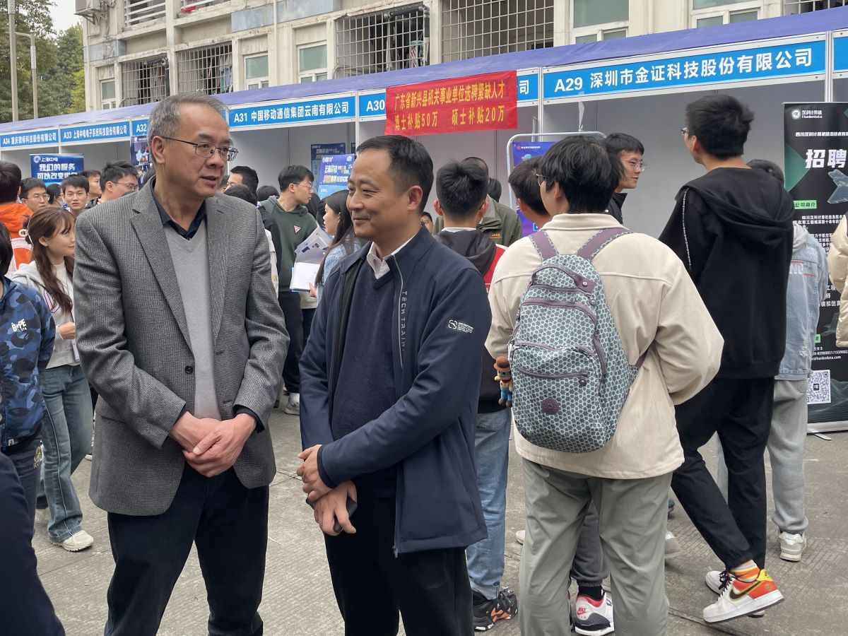 高平平书记一行先后走访了参会的各个企业展台,与企业代表亲切交流,介绍学院发展、专业设置以及毕业生具体情况,详细了解企业的招聘需求、岗位设置、薪酬待遇等情况,认真听取了用人单位对人才培养工作的意见建议。用人单位对学院毕业生的专业能力与综合素质给予充分肯定,希望后期能进一步加强与学院的联系沟通。