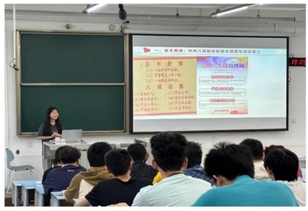 张欢老师对中央八项规定精神的内容进行了细致阐释,引导入党积极分子深入领会其精神实质。她着重强调,贯彻中央八项规定精神需持之以恒,要求大家严格遵守各项纪律,时刻保持纪律意识,将优良作风融入日常学习与工作中,以实干担当推动学习教育取得实效。