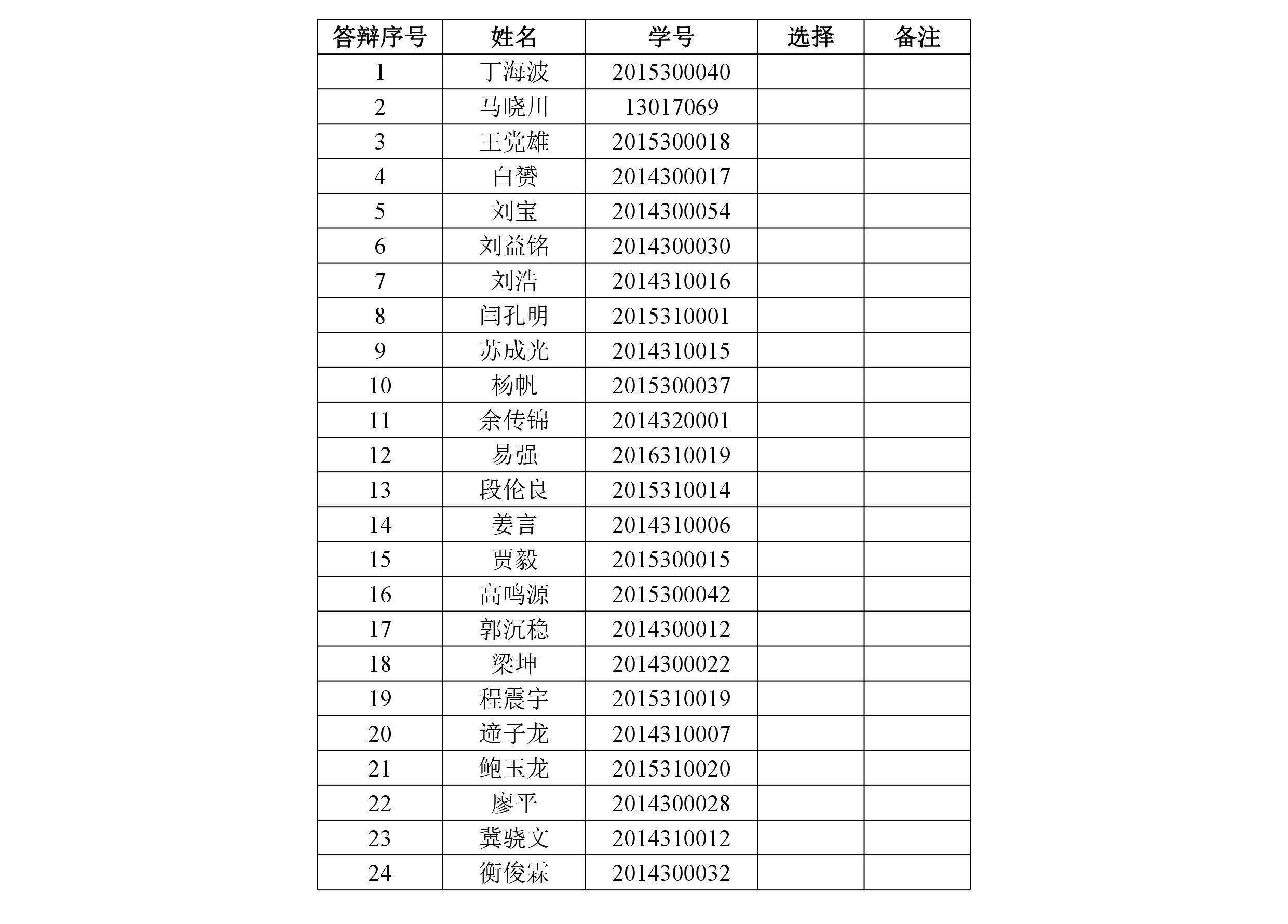 一、候选人答辩顺序