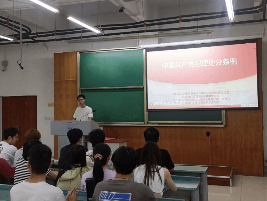 近日,中共中央办公厅印发《关于在全党开展党纪学习教育的通知》,根据《通知》,经党中央同意,自2024年4月至7月,在全党开展党纪学习教育。为全面深入学习贯彻习近平新时代中国特色社会主义思想,实实在在开展党纪学习教育,土木学生第三党支部于2024年4月25日下午15点30分在犀浦校区X4152教室展开以“深学细悟新思想,知行合一慎笃行”为主题的学习教育,活动主要内容为党的二十大精神学习研讨与党纪学习教育,支部全体成员踊跃参与。