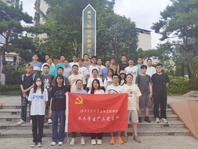 追随党的百年足迹,在纪念革命先烈、永葆奋斗初心的崇高使命推动下,5月16日下午16点,支部成员在犀浦校区集合后,乘坐地铁6号线前往“梁家巷”站,并于16点40分准时抵达庄严肃穆的马鞍山革命烈士陵园。作为“解放大西南”英勇牺牲的41名革命烈士的安息之地,马鞍山革命烈士陵园见证了无数英烈的英勇事迹和革命精神,承载着厚重的历史和不朽的记忆。尽管历史的风雨曾让陵园遭受磨难,但1986年成都市(原西城区)人民政府对其进行重修,也表达了人民对英雄的无限敬仰和对历史的深刻铭记。