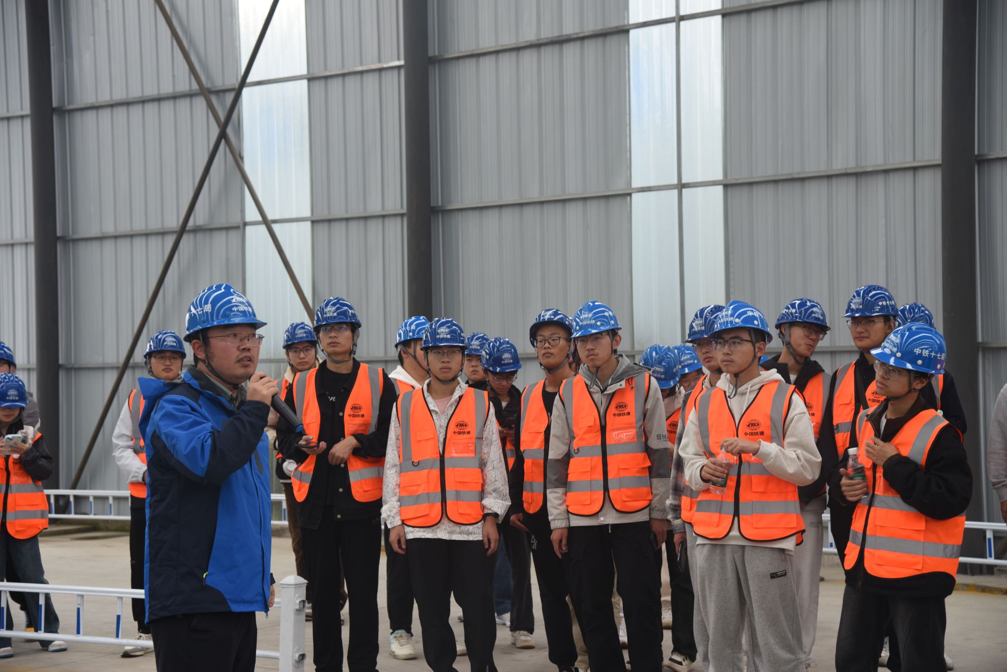 在参观过程中,同学们深入施工现场,近距离观察了桥梁施工、路基处理、轨道铺设等关键环节。还参观了梁场和拌合场,自动化设备大大省去人力,从前需要四五个人合力才能完成的工作在智能化系统的帮助下只需要一人操作即可完成。