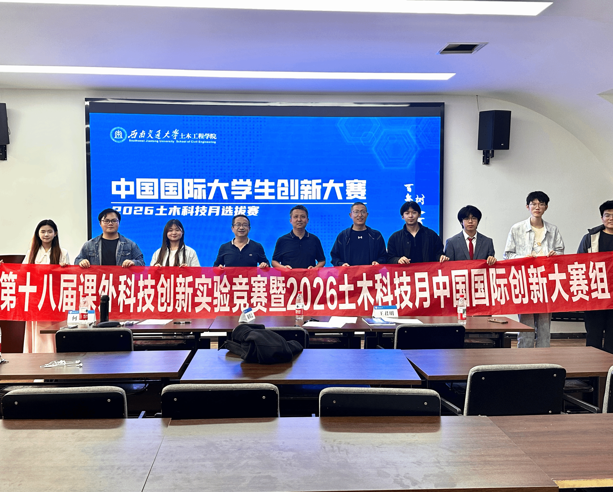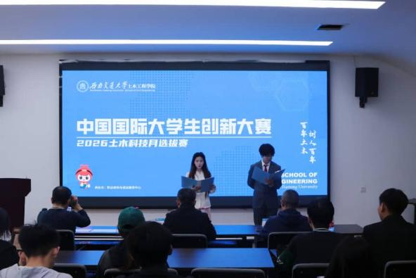 4月12日下午2点,第十八届课外科技创新实验竞赛暨2026土木科技月中国国际大学生创新大赛院级选拔赛于犀浦校区X4407教室顺利举行,本次大赛汇聚bat365中文官方网站众多优秀参赛团队,九组参赛队伍精心筹备、同台竞技,全力争夺校级赛事晋级名额。拥有丰富竞赛指导经验的何畏、谢明志、王君明三位评委老师出席本次选拔赛并担任评审工作。