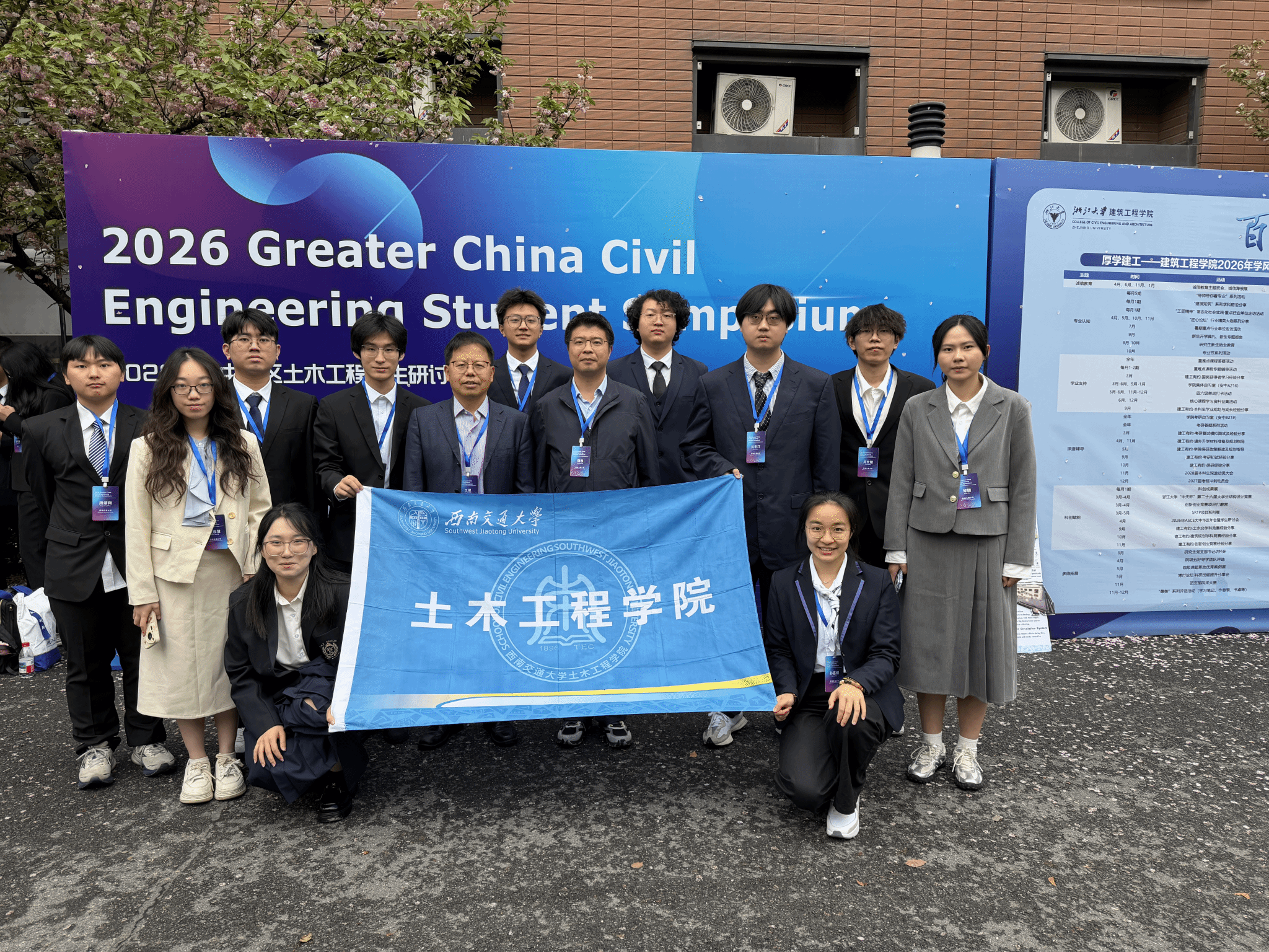 2026年4月10日至13日,学院派出由3名指导老师、17名学生组成的代表队,赴浙江杭州参与由浙江大学承办的2026年大中华区土木工程学生研讨会,届时,与参会的其他11所学校的建立了交流渠道,巩固了与美国土木工程师协会的沟通桥梁纽带,参与全部三个小项的比赛,收获颇丰。