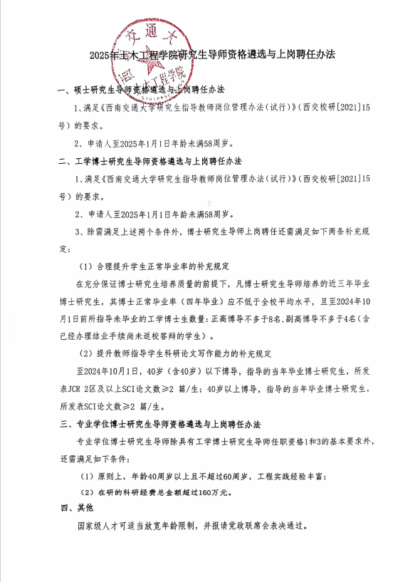 2025年土木工程学院研究生导师资格遴选与上岗聘任办法