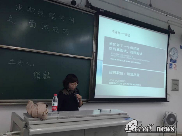 课程的尾声,熊老师再次详尽地列出了在我们未来面试过程中可能出现的问题,同时她也表达了对所有土木学子的祝愿。同学们纷纷表示通过本堂课的学习也初步了解运用掌握了面试的基本技巧,更以热烈的掌声表达了对老师的感谢。