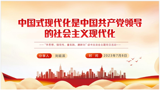 刘延滨同学分享了“中国式现代化是中国共产党领导的社会主义现代化”党日主题,从“社会主义现代化的历史演进”、“为什么是中国式的现代化,而不是西方世界的现代化”、“为什么是社会主义的现代化,而不是资本主义的现代化”、“为什么说中国共产党是中国现代化的领导者”四个方面进行分析。党的二十大更加清晰擘画了到2035年我国发展的目标要求,科学描绘了全面建成社会主义现代化强国、全面推进中华民族伟大复兴的宏伟蓝图。坚持把人民对美好生活的向往作为奋斗目标,坚持以人民为中心的发展思想,着力保障和改善民生,着力解决人民急难愁盼问题,让中国式现代化建设成果更多更公平地惠及全体人民。从这些历史进程中,可以得出:建设社会主义现代化国家是我们党一以贯之的奋斗目标,一代一代地接力推进,并不断取得举世瞩目、彪炳史册的辉煌业绩。