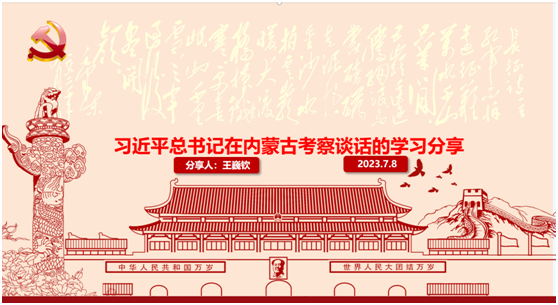 王巍钦同学分享了“习近平总书记在内蒙古考察谈话”党日主题,从老家平昌县下的马鞍山、部分教材的不正确价值观引导、“7·5”事件为例,告诉大家要坚定不移全面推行使用国家统编教材,确保各民族青少年掌握和使用好国家通用语言文字。意识形态领域一旦被占领,苏联的和平演变从来不只是故事,包括现在的俄乌战争。文化渗透一直在发生,这并不是危言耸听,抵御不良文化渗透是中国维护文化安全之举,我们应思考与警惕不良文化,坚决筑牢思想防线。