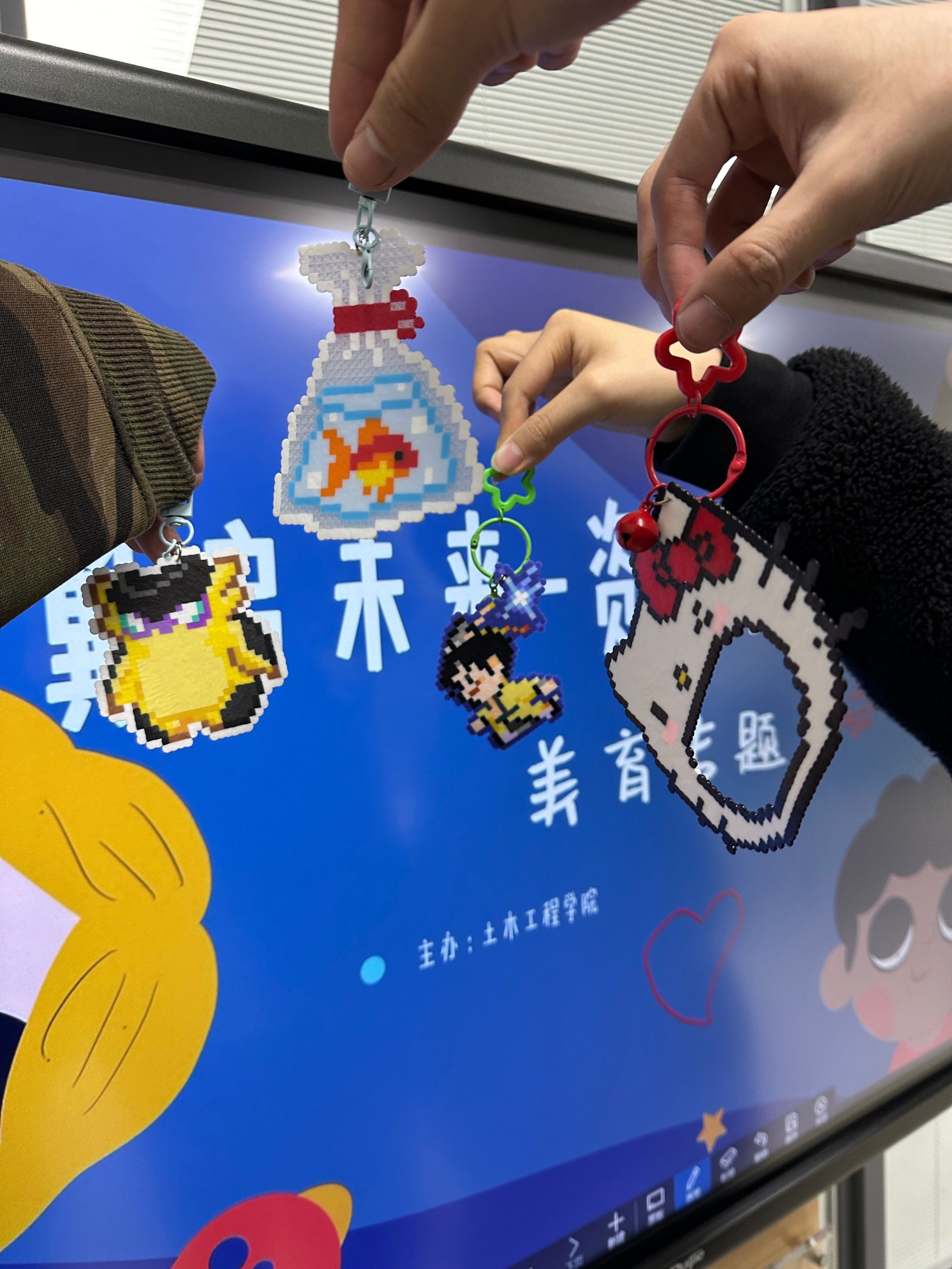 本次活动以趣味十足的“拼豆创作”为美育实践载体,通过手工创作的沉浸式体验,引导受助学生在动手实践中发现美、创造美、感悟美。活动伊始,工作坊指导老师贾璇琦主持开场并阐明活动主旨。她表示,资助育人不仅要为学生提供物质保障,更要关注其精神成长与全面发展,本次美育主题活动正是基于这一理念开展,希望同学们能暂时放下学业压力与电子设备,全身心投入手工创作的乐趣中,在色彩搭配与造型设计中激活审美感知,在专注实践中锤炼耐心与匠心,同时在互动交流中增进同学情谊,让美育滋养心灵、赋能成长。