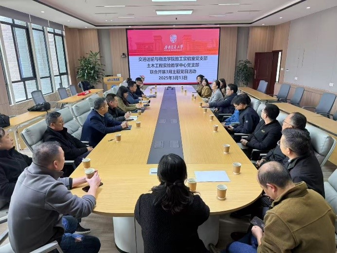 为深入学习贯彻党的教育方针,加强基层党组织建设,促进学科间交流融合,3月13日下午,土木工程实验教学中心党支部与交通运输与物流学院教工实验室党支部全体党员齐聚一堂,联合开展了一场别开生面、内容丰富的主题党日活动,为新学期党建与教学工作注入蓬勃动力。