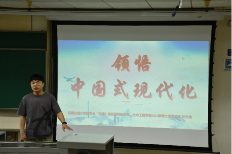 最后,活动邀请了西南交通大学“红志”工作室石莹老师与同学们深入探讨了新征程上中国青年的使命与担当。他指出新征程上的中国青年,要牢记“空谈误国、实干兴邦”,胸怀“国之大者”,立志做有理想、敢担当、能吃苦、肯奋斗的新时代好青年,用担当和尽责展现青春风采,既实现自己的青春梦、人生梦,更用青春奋斗汇聚起全面建设社会主义现代化的磅礴力量。