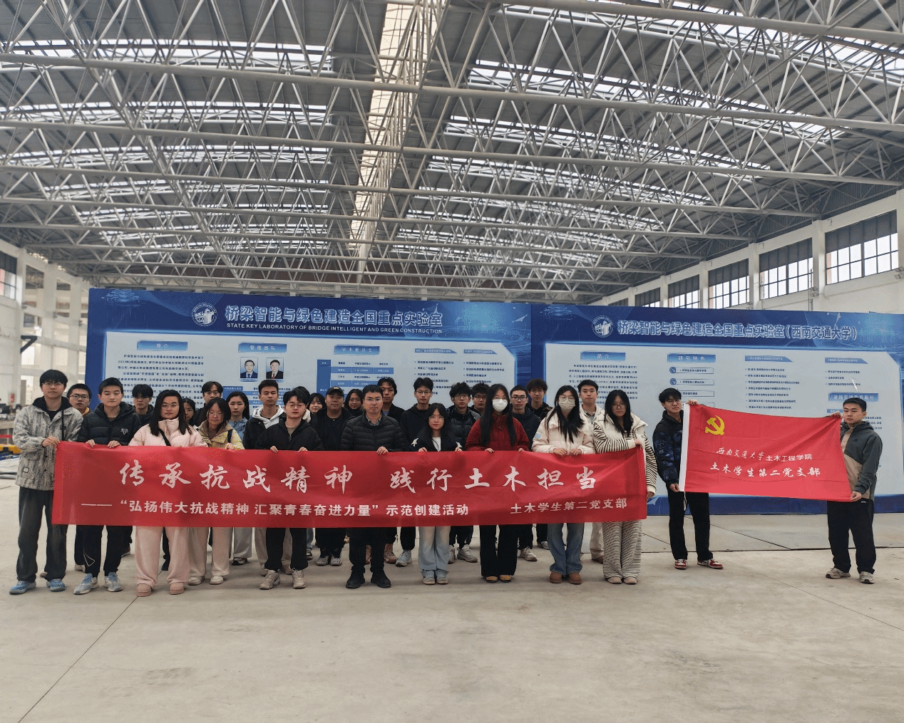 2025年11月18日,bat365中文官方网站土木学生第二党支部精心组织支部党员与入党积极分子,赴桥梁智能与绿色建造全国重点实验室开展“传承抗战精神,践行土木担当”主题实践活动。本次活动特别邀请实验室张明金老师全程带队讲解,为参与成员提供了兼具深度与温度的专业指导。