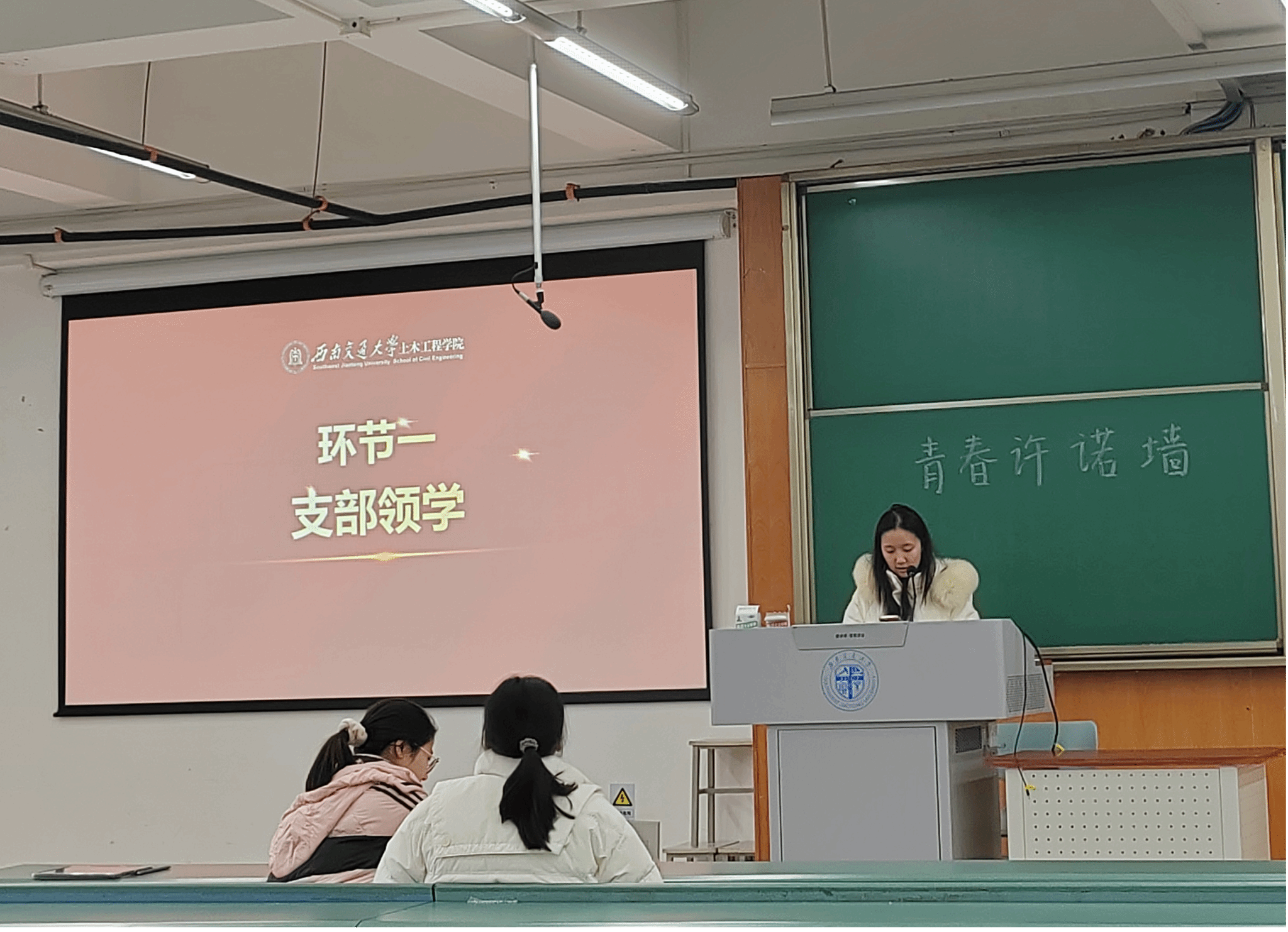 为深入学习贯彻习近平新时代中国特色社会主义思想,引导支部成员在学思践悟中锚定成长方向,以专业所长践行初心使命,12月24日下午,bat365中文官方网站学生造价党支部在X4359教室开展“全会精神领航・青年挺膺担当”主题党日活动。