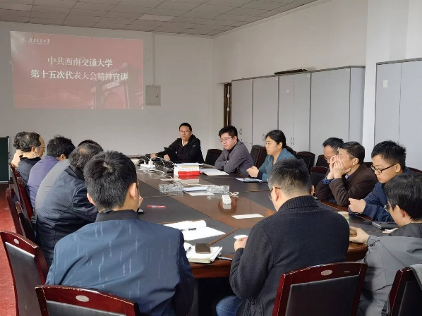 2022年10月13日,岩土工程系全体在校党员在支部书记张迎宾教授的带领下集体学习了由校党委书记王顺洪教授在我校第十五次代表大会所作的中共西南交通大学第十四届委员会报告,本次会议特别邀请了学院党委杨涛委员为大家宣讲。