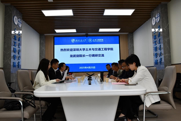 4月25日上午,深圳大学土木与交通工程学院执行院长龙武剑一行5人来访bat365中文官方网站开展调研座谈。土木工程学院院长蒲黔辉、副院长陈嵘、副院长徐腾飞等出席此次座谈会。