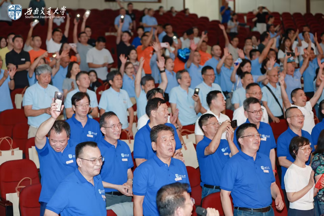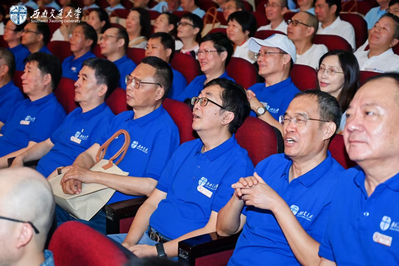 会上还播放了土木工程学院院情视频,全面展示了学院近年来在学科建设、科研成果和学生培养等方面的新成就与新突破。校友们专注观看,频频点头,展现出对学院快速发展的骄傲与认同。随后,会场进入校友代表分享环节,1981级桥梁专业校友魏云祥深情回顾在峨眉校区就读时的同窗深情,并表示愿为学院发展不断贡献力量;1981级铁道工程专业校友张瑞龙通过追忆峨眉校区明诚堂、图书馆、大板楼的点点滴滴,表达了毕业四十周年重逢的喜悦;1981级地下工程与隧道工程专业校友李永利以交大“双严”传统为切入点,与在座校友共同回忆读书期间迎接期末考试与隧81班向工81班“借女生”的轶闻趣事;1981级工业与民用建筑专业校友杜涛深情回顾母校129年办学历程,为母校献上真挚祝福;1992级铁道工程专业校友袁阳对母校给予校友的支持表示衷心感谢,并祝愿母校薪火永续、桃李芬芳;2012级工程检测与结构评估专业校友曾泽宇代表90后00后新一代校友,深情回顾与交大峨眉校区的不解之缘,抒发父子两代交大人的情怀。校友代表们对母校深切的感情汇聚成鲜明的主题——“祝愿母校、祝愿土木工程学院越来越好!”