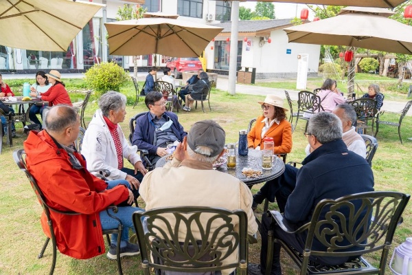 当日上午,参与活动的退休老教师们分别从九里校区和犀浦校区乘车出发。一路上,老教师们精神矍铄、谈笑风生,大家共话家常、畅谈生活,车厢内其乐融融,洋溢着温馨和谐的氛围。抵达新都区双龙庄园后,园内草木青翠、景致宜人,处处充满生机与活力。老教师们或漫步于庄园之中,呼吸清新空气,感受自然生机;或围坐在一起休憩闲谈,回忆在交大、在学院耕耘奉献的峥嵘岁月,现场气氛轻松而热烈。