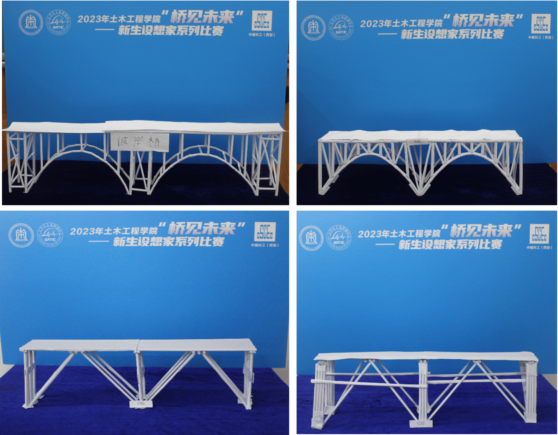 经过初赛选拔后,有50支队伍从121支队伍中脱颖而出进入决赛,本次决赛主要采用选手手工制作的模型作品以及现场答辩和加载的方式向大家展示选手的成果。同时,选手要现场回答评委老师们针对作品所提出的疑问。评委老师们根据现场同学们的作品展示、纸桥强度、纸桥变形程度、答辩情况做出相应的评分。