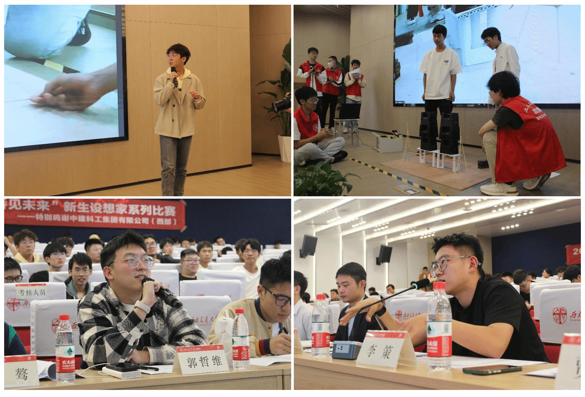2023年11月5日13时30分,由共青团西南交通大学委员会、土木工程学院主办,土木工程学院大学生科创中心承办的2023年土木工程学院“桥见未来”新生赛决赛在我校犀浦校区图书馆二号报告厅举行。中建科工四川公司天科创智项目总工程师、学院青年讲师团成员张炳宏,中建科工集团四川公司人力资源管理部人力专员姚军,学院辅导员老师李江怀,薛人铭,谢宇清,贾璇琦,李策,郭哲维,李阳阳出席决赛现场。