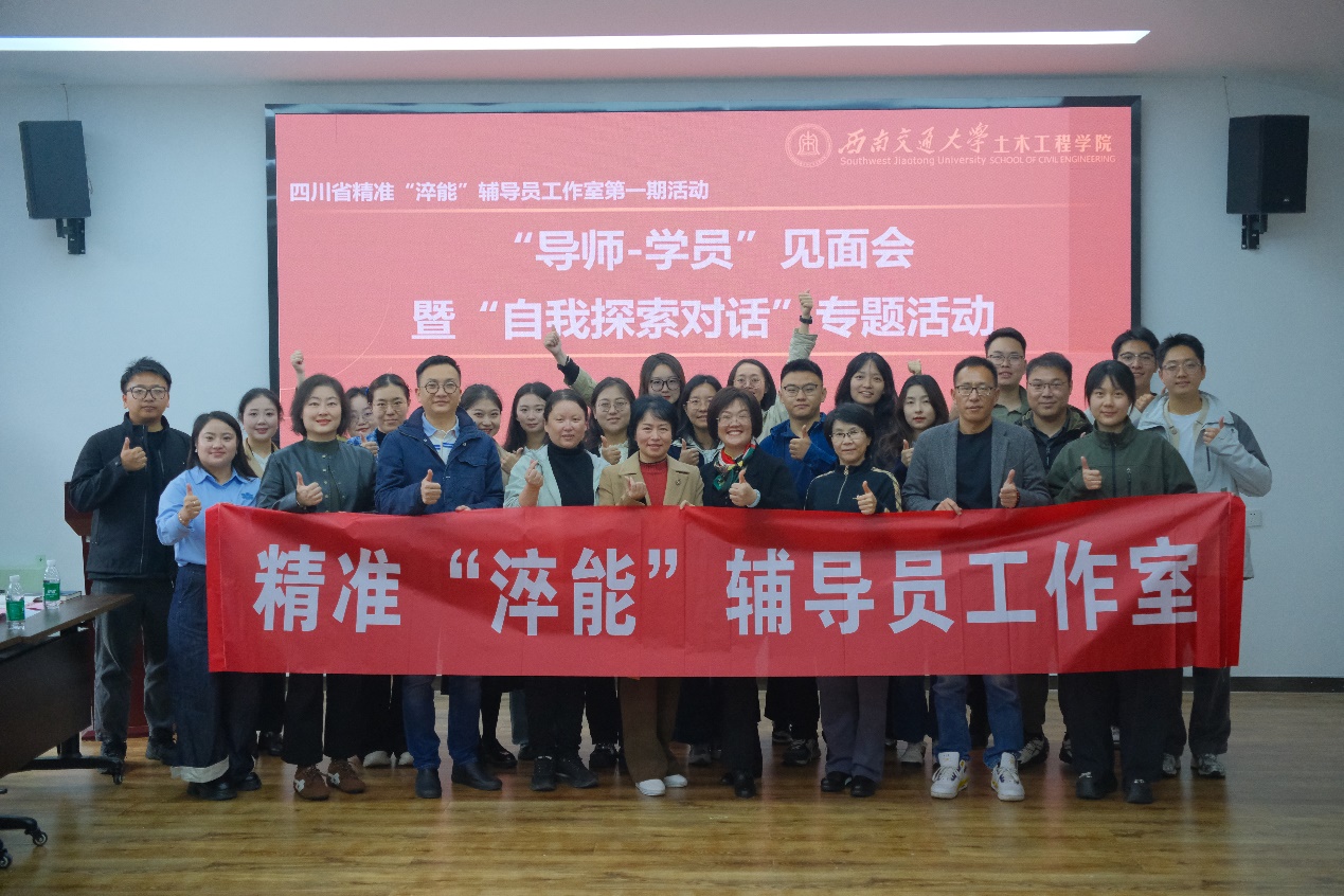 10月29日下午,四川省精准“淬能”名辅导员工作室(以下简称“工作室”)首期活动“导师-学员”见面会暨“自我探索对话”专题活动在西南交通大学犀浦校区辅导员工作室X4407举行,工作室导师团成员、全体学员参加了活动。