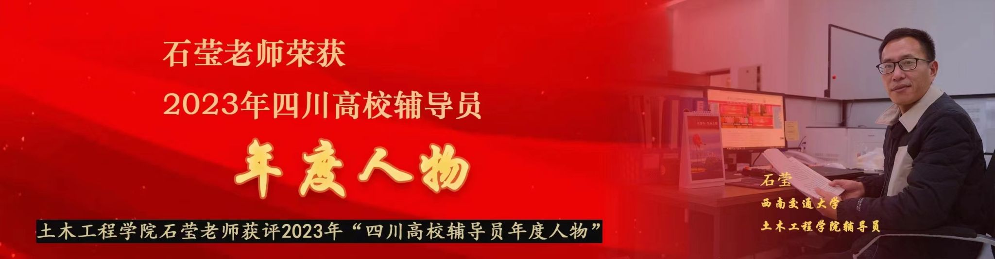 土木工程学院石莹老师获评2023年“四川高校辅导员年度人物”